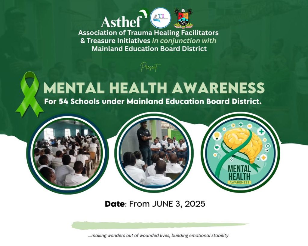 The Association of Trauma Healing Facilitators (ASTHEF), in collaboration with Treasure Initiatives and the Mainland Education Board District, Lagos is launching a major Mental Health Awareness Campaign across 54 public schools, starting from June 3, 2025.